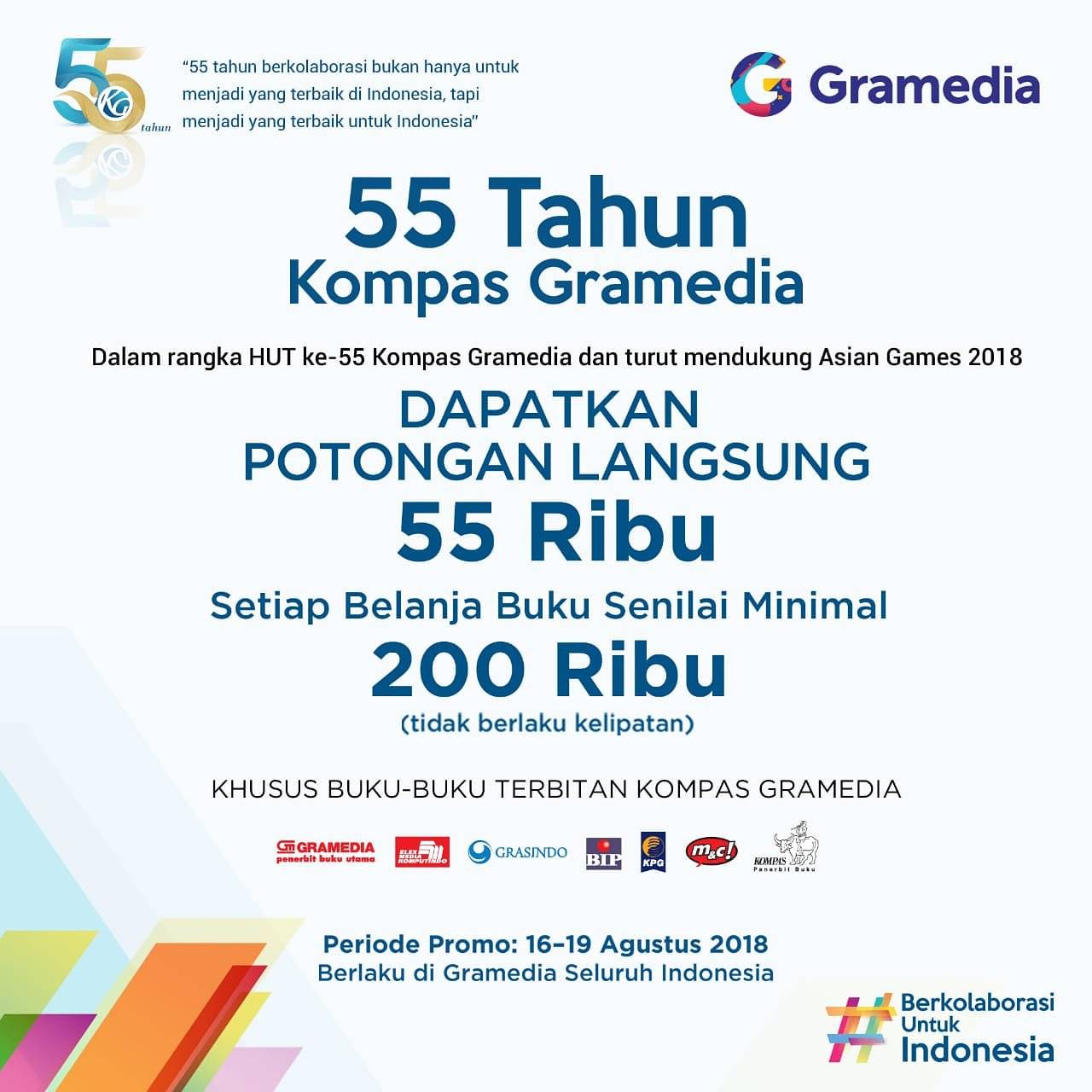 Mau komen dikit. Aku lebih suka promo KFC itu kalau paket Super Besar-nya dikasih diskon biar hanya beberapa ribu. Breadtalk selain promo yang ada di gambar, juga ada promo untuk per potongan/ slice kue menjadi beberapa belas ribu saja. Kalau Jco, suka sih tapi sayang donatnya hanya enam, hahahah. Gramedia banyak memberikan promo. Bukan hanya yang ada di gambar, tapi mereka juga memberikan diskon 25 ribu untuk pembelian semua buku komputer Elex senilai 100 ribu. Juga ada promo pakai Go-PAY dengan pengembalian uang maksimum 20 ribu, bisa cek disini. Kalau kamu suka belanja buku secara online di situs Gramedia, ada delapan paket merdeka selama 17 hari dengan berbagai genre dengan diskon 45%. Keren kan? Boleh cek langsung di situsnya ya. Â